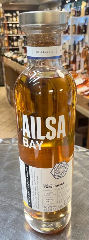 Une tourbe bien présente, mais non médicinale, gourmande et le vieillissement dans des fûts de type « Quarter Cask » permet un bel échange avec le bois.